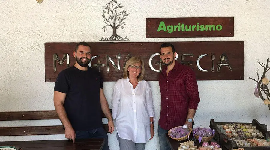 Their two sons Alexis and Francesco are proud to continue the family tradition, cultivating, improving and taking good care of all production details to offer the best quality products to their guests. Their goal is to make sure the guests of Magna Grecia experience unique moments while visiting their venue Εnjoy the olive oil experience at Magna Grecia pharm: an expert will teach you to roll the Oil around in your mouth until it completely covers your palate and tongue.