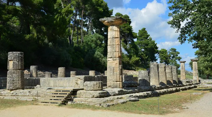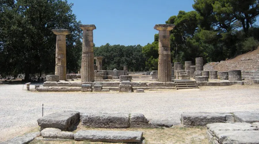 The site of Olympia, in a valley in the Peloponnesus, has been inhabited since prehistoric times. In the 10th century B.C., Olympia became a centre for the worship of Zeus. The Altis – the sanctuary to the gods – has one of the highest concentrations of masterpieces from the ancient Greek world. In addition to temples, there are the remains of all the sports structures erected for the Olympic Games, which were held in Olympia every four years beginning in 776 B.C.