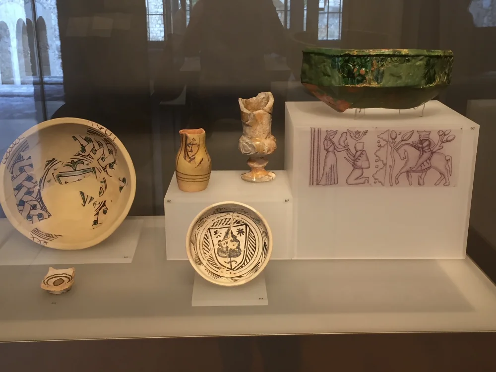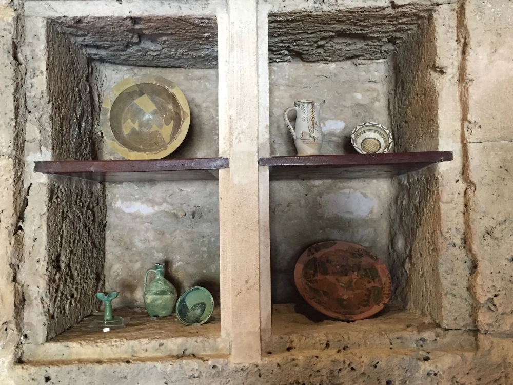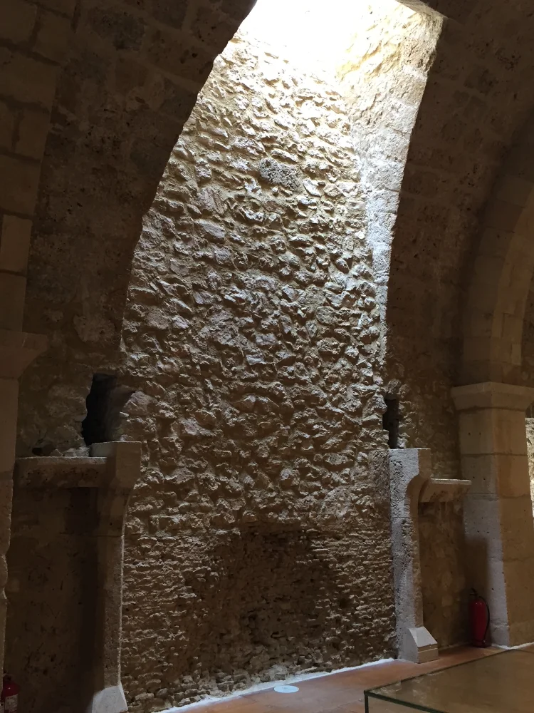 The conference had two storeys (excluding room G) and are saved within their tanks , numerous fireplaces , similar to those of peripheral ktiriontou external enclosure , storage niches and toilet rooms . The entrance to these was the inner courtyard and terrace with outdoor mason skales.Stegazontai semi-ellipsoid with high arches , which in conjunction with the openings with sunken dome and slightly pointed arches openings confirm the western origin of the founders of the castle.