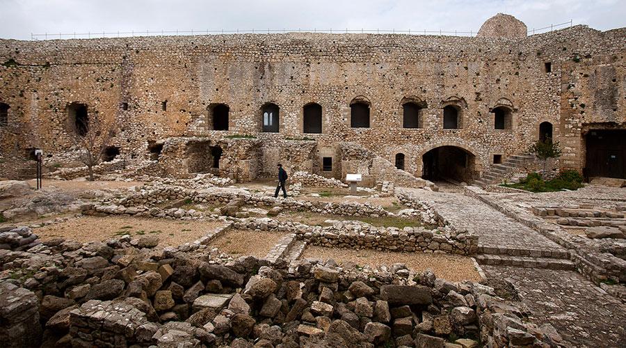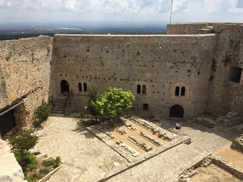 The inner enclosure has a single form and belongs to the original Frankish period , without having undergone subsequent surgery on the architectural details . The entrance is on the northwest side of the hexagon and consists of two successive gates and the passageway . To the east of saved traces on the floor of the chapel of the castle . He precinct consists of a consecutive series of vaulted rooms surrounding a central courtyard . The halls are covered with a loft , which was the motion path of the military and was accessible from the patio through the created ladder . In areas of the inner enclosure was the residence of the castellan or prince , reception rooms , galley and accommodation for the garrison.